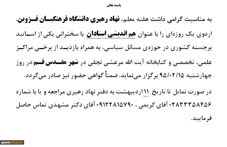 برگزاری اردوی یک روزه با عنوان هم اندیشی استادان توسط نهاد رهبری 2