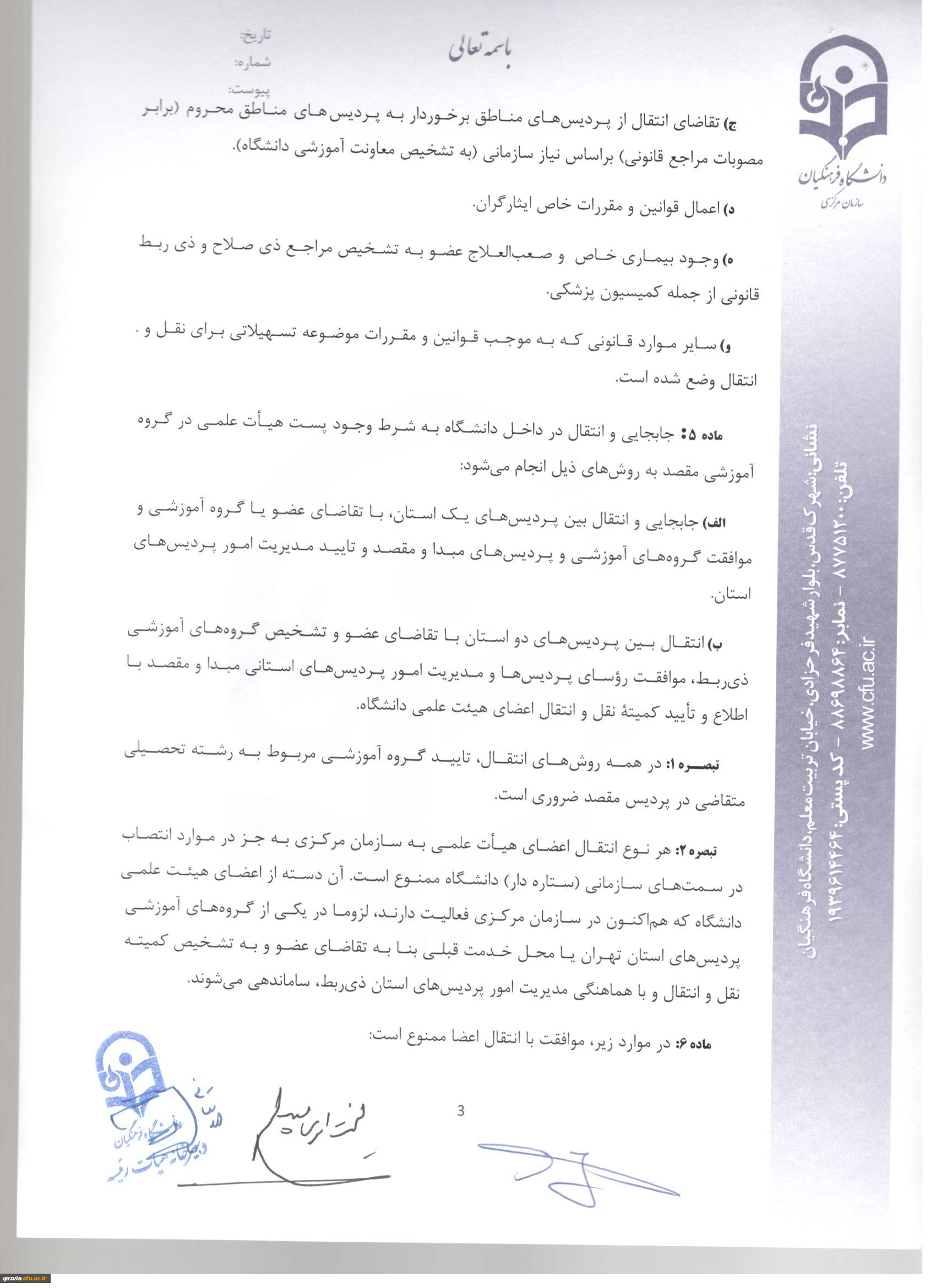 شیوه نامه ماموریت و انتقال اعضای هیئت علمی 6
