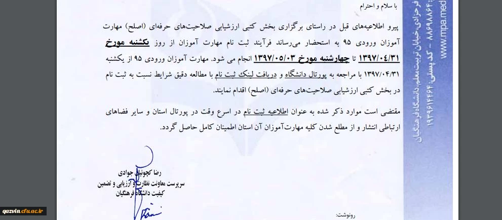 اطلاعیه ثبت نام در بخش کتبی اصلح مهارت آموزان ورودی 95 2