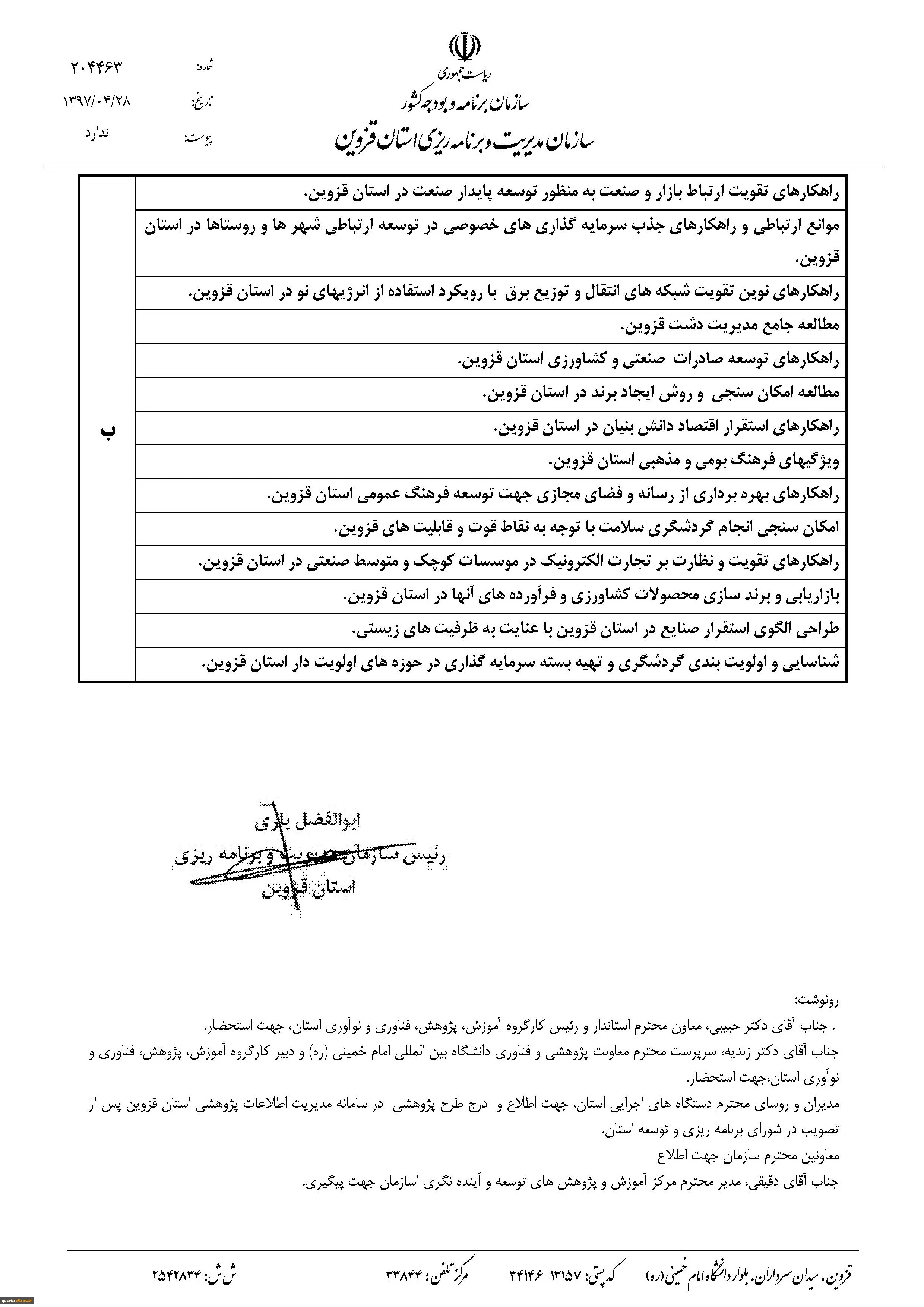 سازمان مدیریت و برنامه ریزی استان قزوین برگزار می کند: فراخوان طرح های پژوهشی سال 1397 4