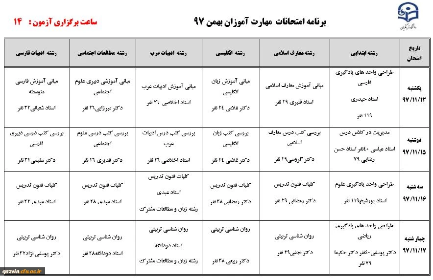 برنامه امتحانات بهمن 97 ویژه مهارت آموزان 2