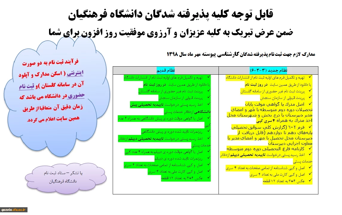 اطلاعیه شماره 1 - ثبت نام پذیرفته شدگان کارشناسی پیوسته مهر 98 2