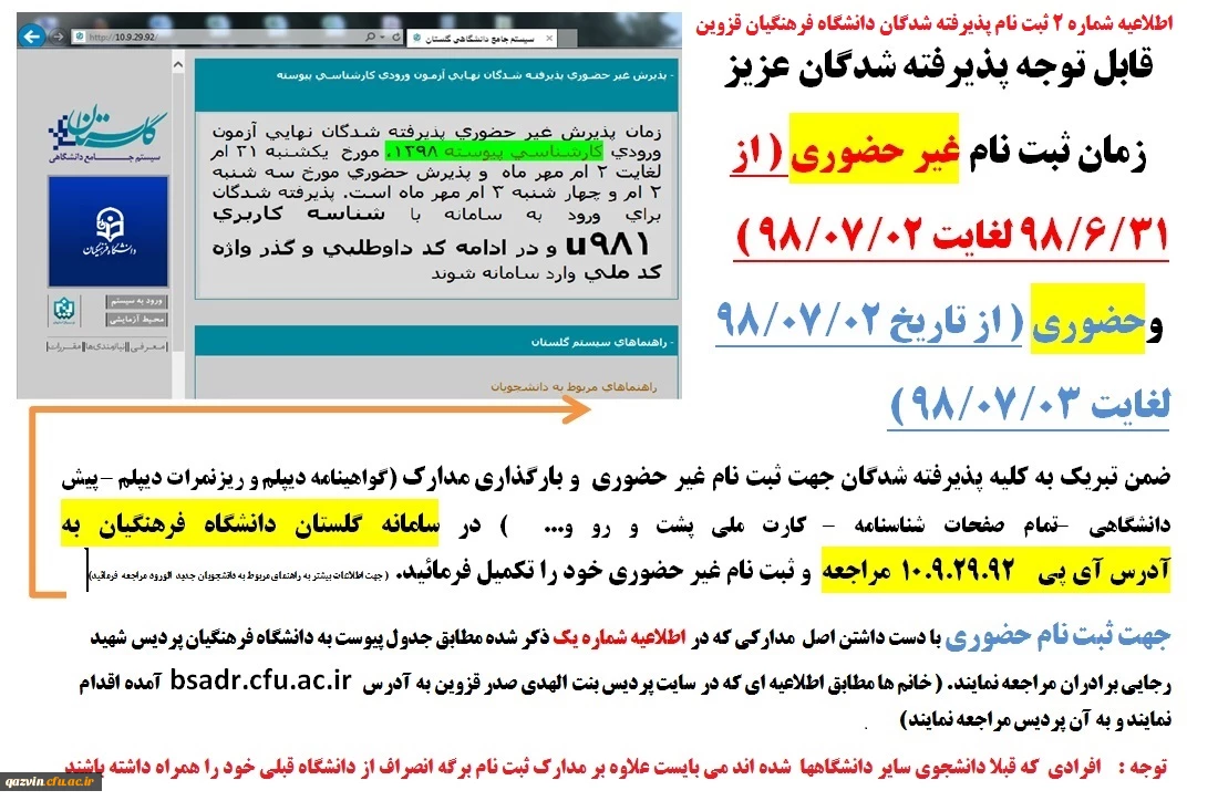 اطلاعیه شماره 2 - ثبت نام پذیرفته شدگان کارشناسی پیوسته مهر 98 2