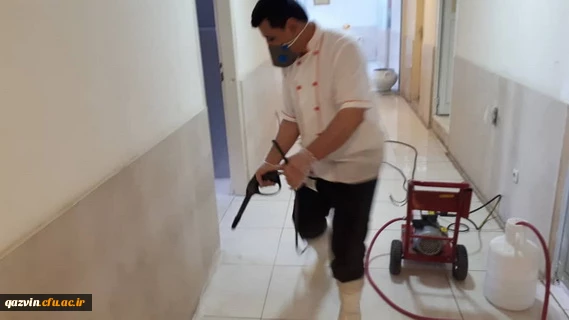 سراهای دانشجویی وساختمان های آموزشی واداری دانشگاه فرهنگیان استان قزوین طی سه مرحله ضدعفونی شد 4