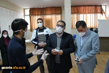 بازدیددکتر انصاری راد معاون دانشجویی دانشگاه فرهنگیان کشوربه همراه دکتر اصغری مدیر کل آموزش وپرورش استان قزوین ازروند تولید ماسک وشیلد محافظ دردانشگاه فرهنگیان استان قزوین 5