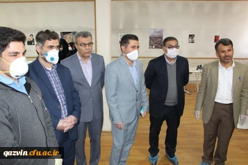 بازدیددکتر انصاری راد معاون دانشجویی دانشگاه فرهنگیان کشوربه همراه دکتر اصغری مدیر کل آموزش وپرورش استان قزوین ازروند تولید ماسک وشیلد محافظ دردانشگاه فرهنگیان استان قزوین 6
