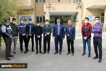 بازدیددکتر انصاری راد معاون دانشجویی دانشگاه فرهنگیان کشوربه همراه دکتر اصغری مدیر کل آموزش وپرورش استان قزوین ازروند تولید ماسک وشیلد محافظ دردانشگاه فرهنگیان استان قزوین 10