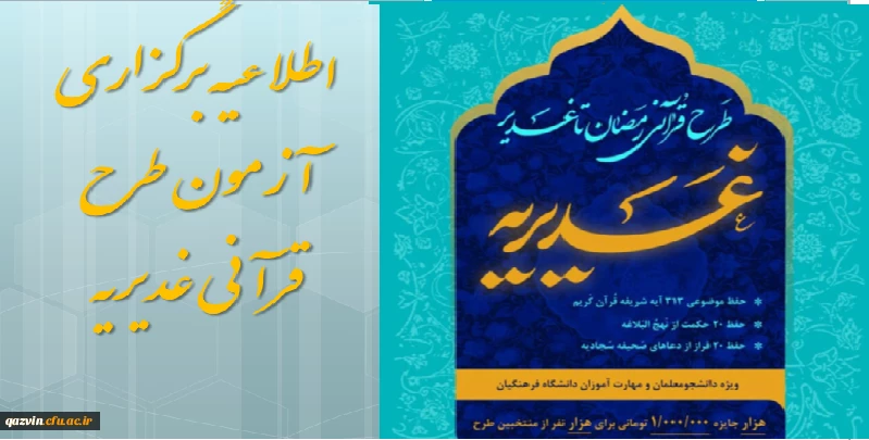 اطلاعیه برگزاری آزمون طرح قرآنی غدیریه 2
