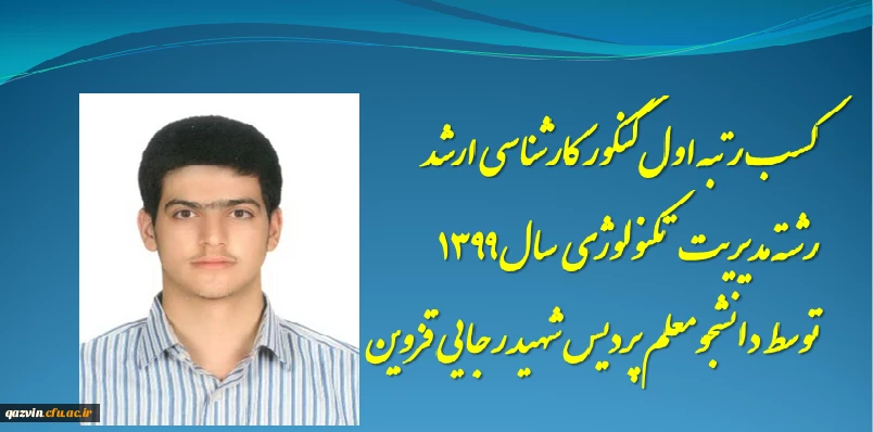 کسب رتبه اول آزمون کارشناسی ارشد رشته تکنولوژی آموزشی توسط دانشجوی پردیس شهید رجایی قزوین 2