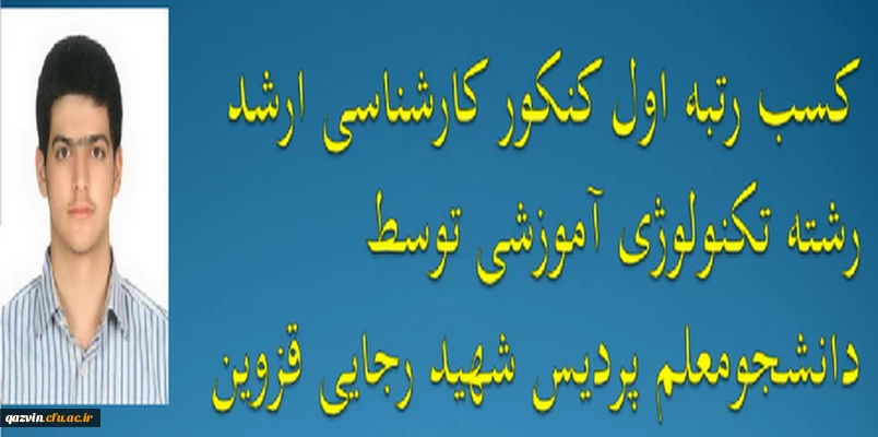 کسب رتبه اول آزمون کارشناسی ارشد رشته تکنولوژی آموزشی توسط دانشجوی پردیس شهید رجایی قزوین 2
