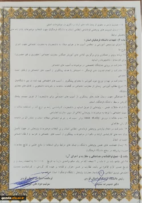 انعقاد تفاهم نامه همکاری های فرهنگی و اجتماعی بین دانشگاه فرهنگیان استان قزوین و فرماندهی انتظامی استان 5
