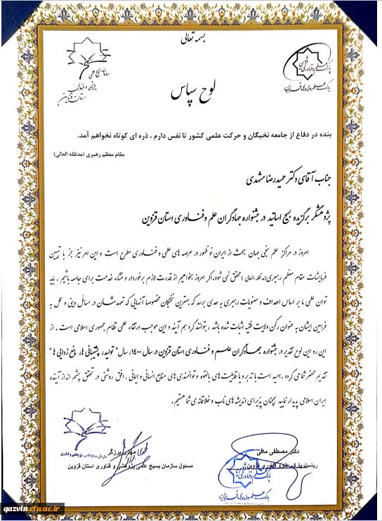 انتخاب مدیر امور پردیس های قزوین به عنوان پژوهشگر بسیجی برتر 11