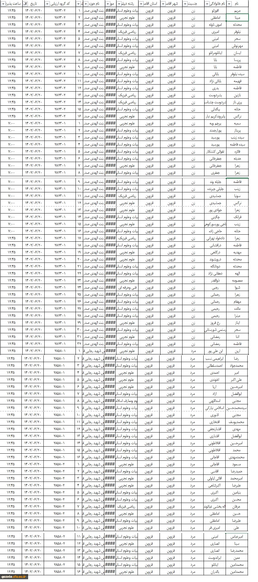 لیست مراجعین داوطلب کنکور روزهای یک شنبه دوشنبه 3